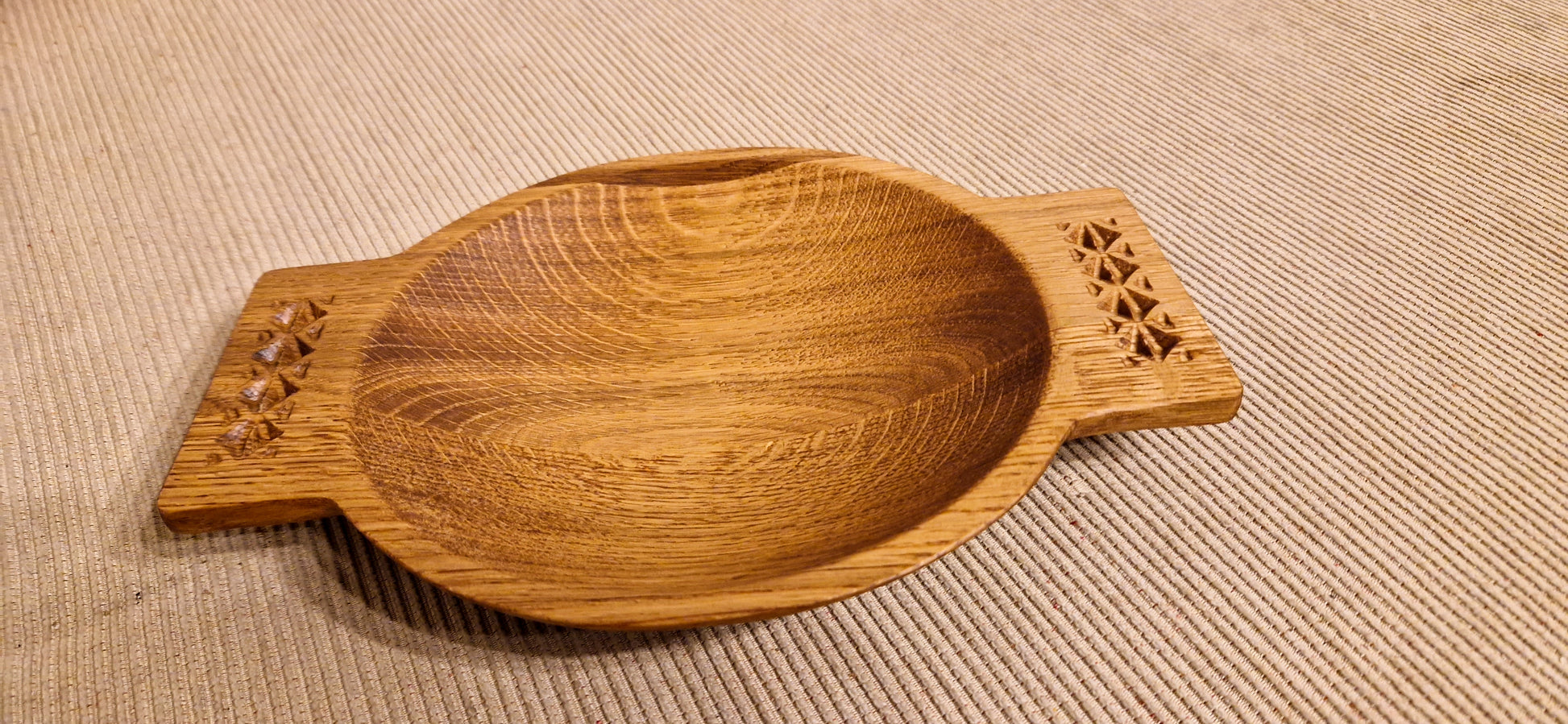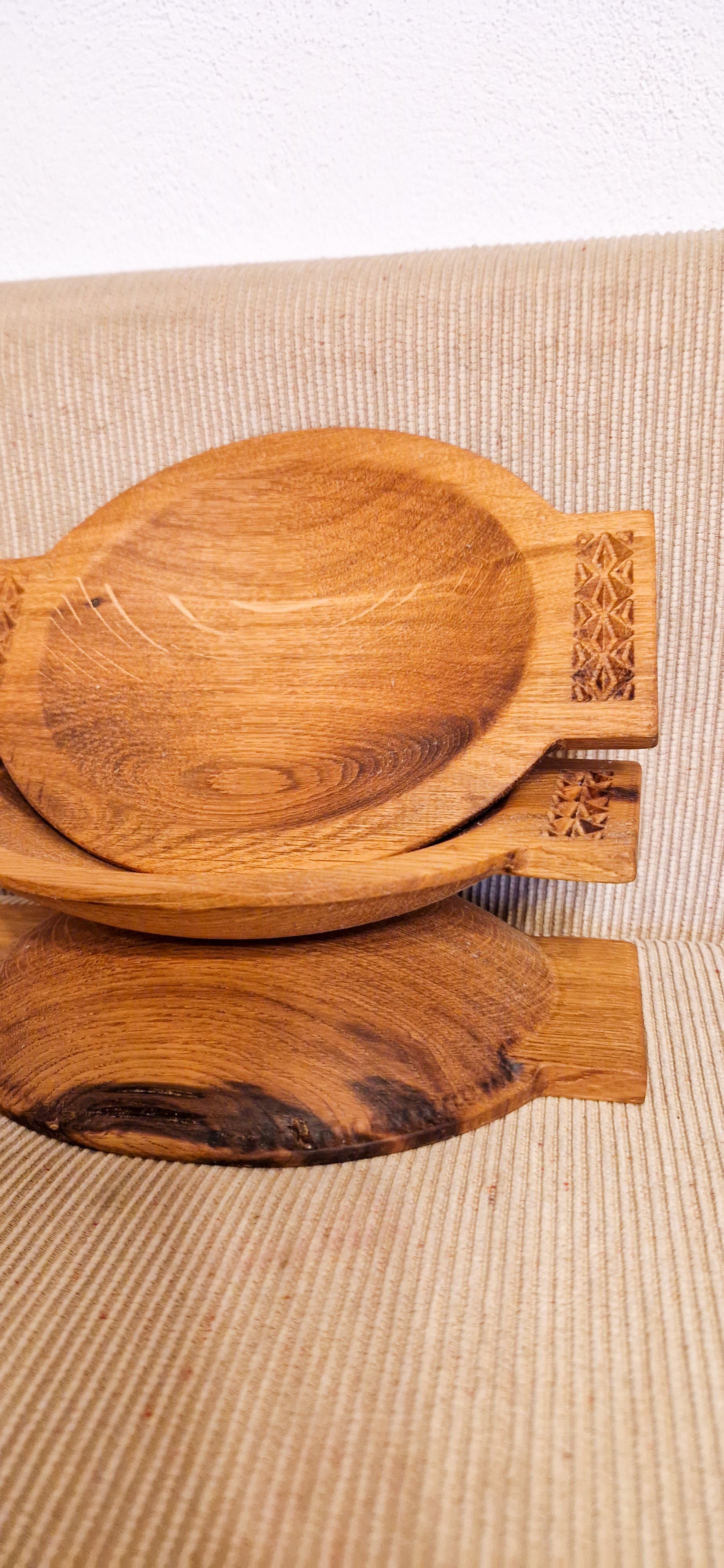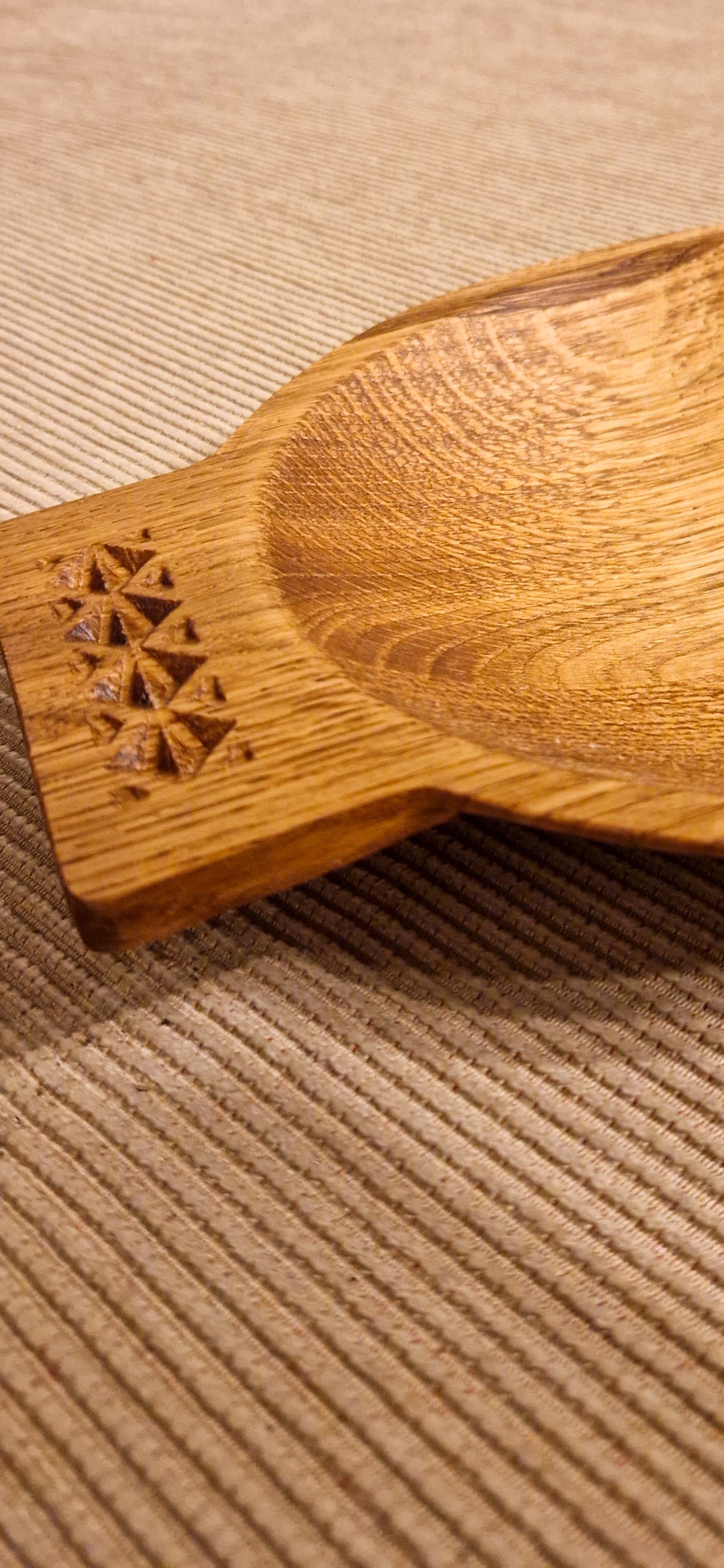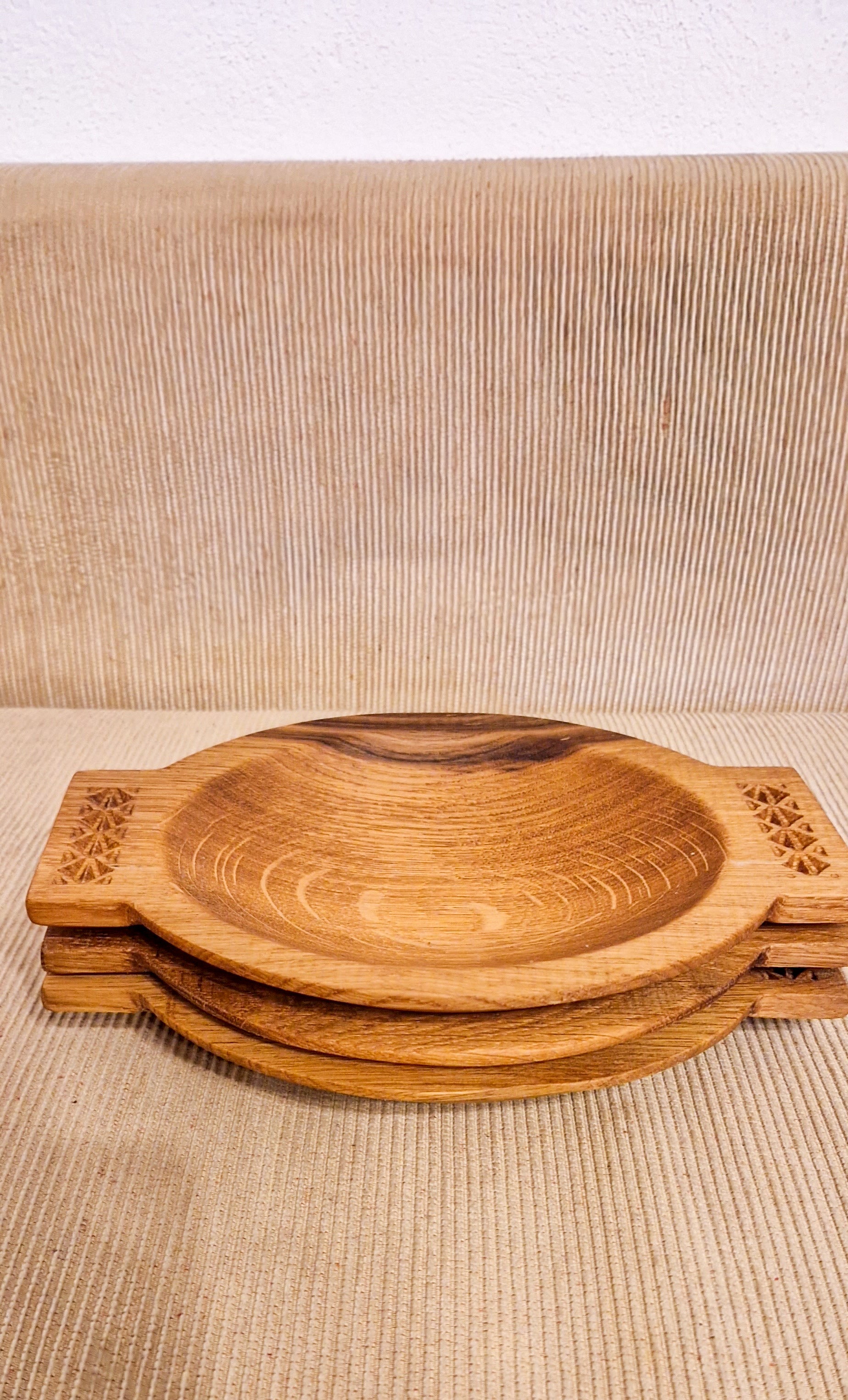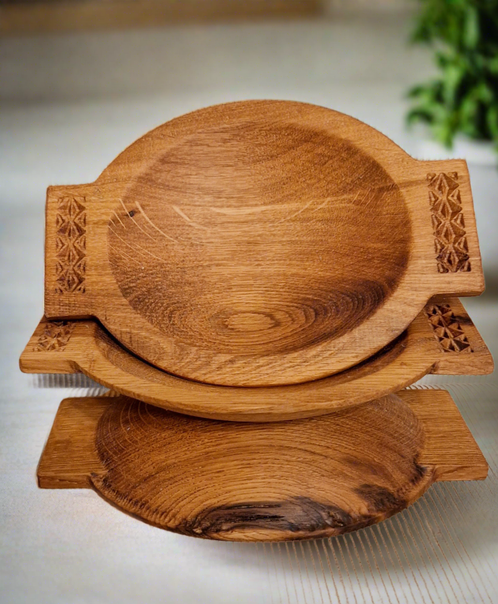 Vă prezentăm ”Blid de lemn”, o farfurie din lemn frumos lucrată, care adaugă o notă de farmec tradițional românesc oricărei mese. Farfuria este realizată din lemn de înaltă calitate esenta stejar și prezintă motive traditionale sculptate pe mânere. Aceste motive sunt inspirate din folclorul românesc și vă vor impresiona cu siguranță oaspeții. Indiferent dacă servești o masă copioasă sau pur și simplu folosești acest ”Blid” ca piesă decorativă, cu siguranță va deveni un plus de preț pentru casa ta.Este amestecul perfect de formă și funcție, făcându-l un must-have pentru oricine iubește cultura și măiestria tradițională românească.