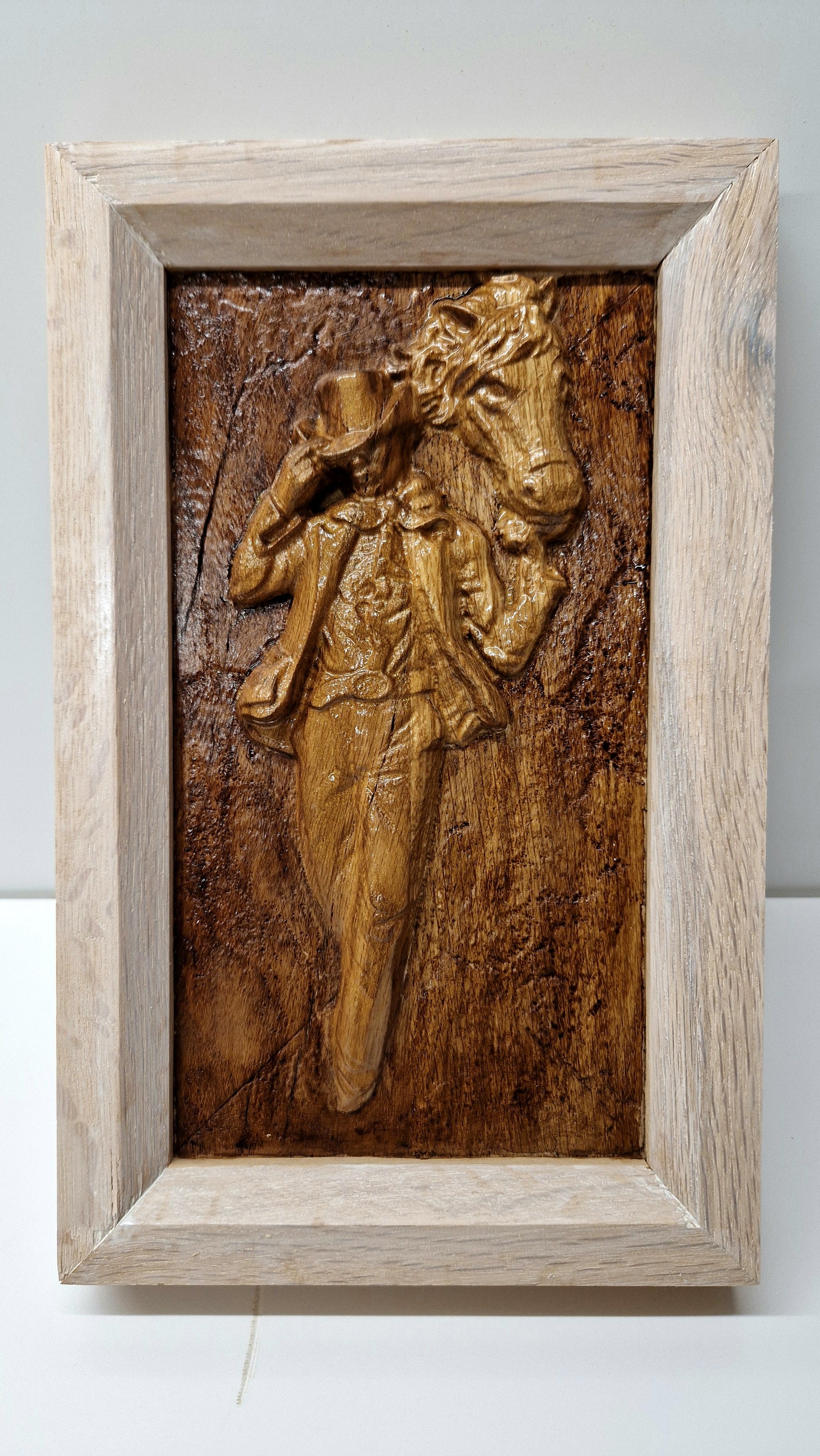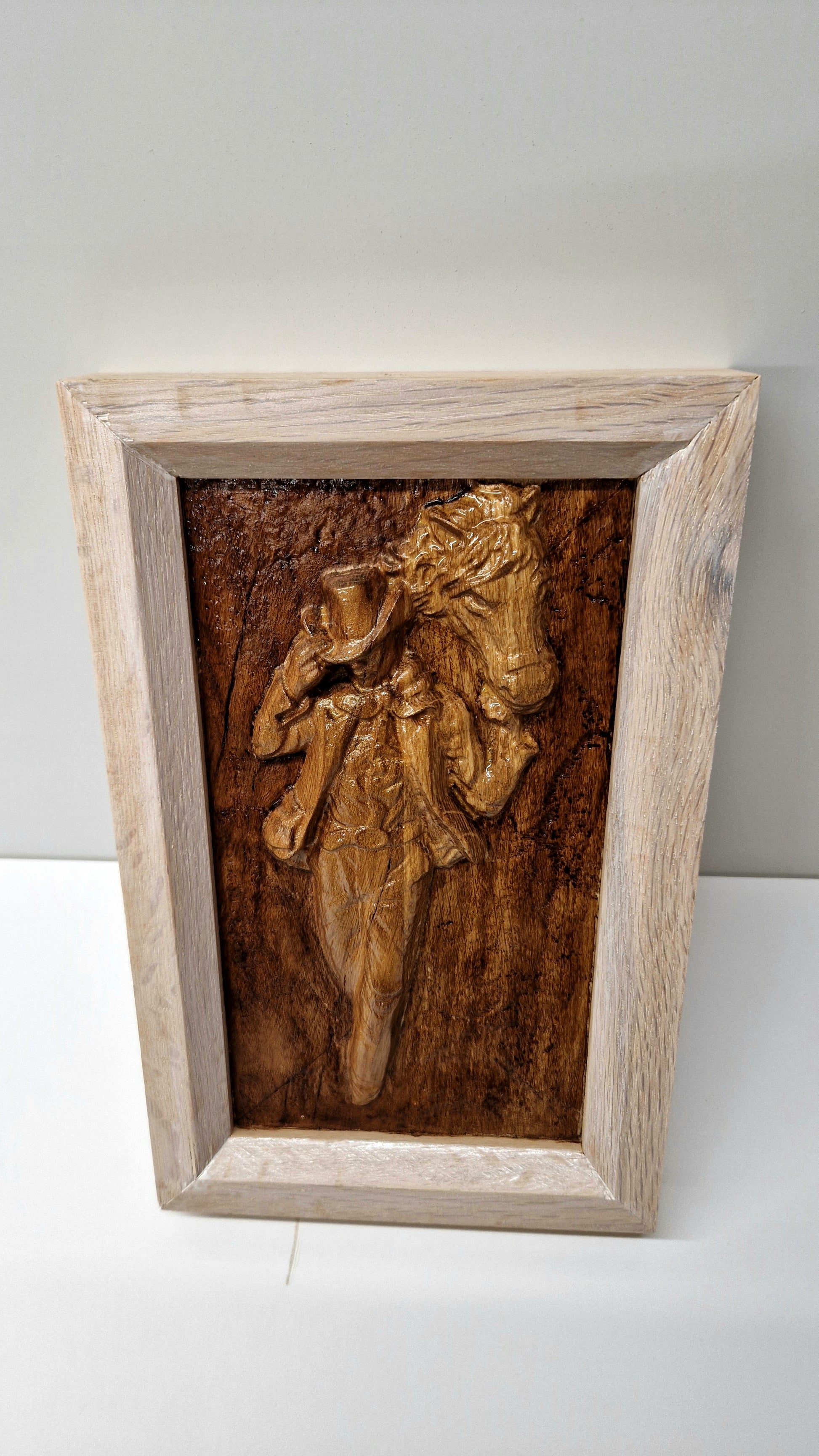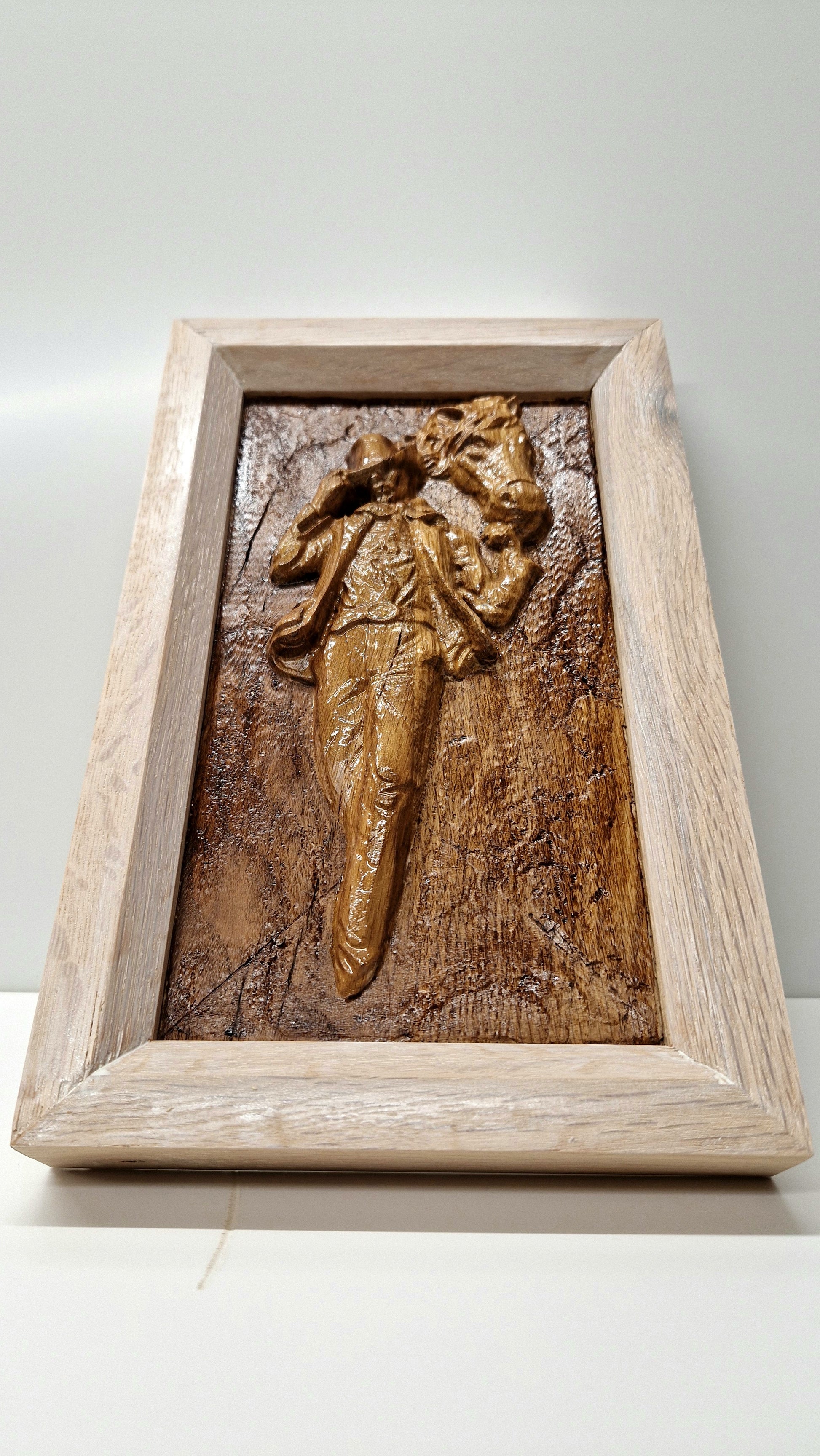Tablou realizat în lemn de stejar.