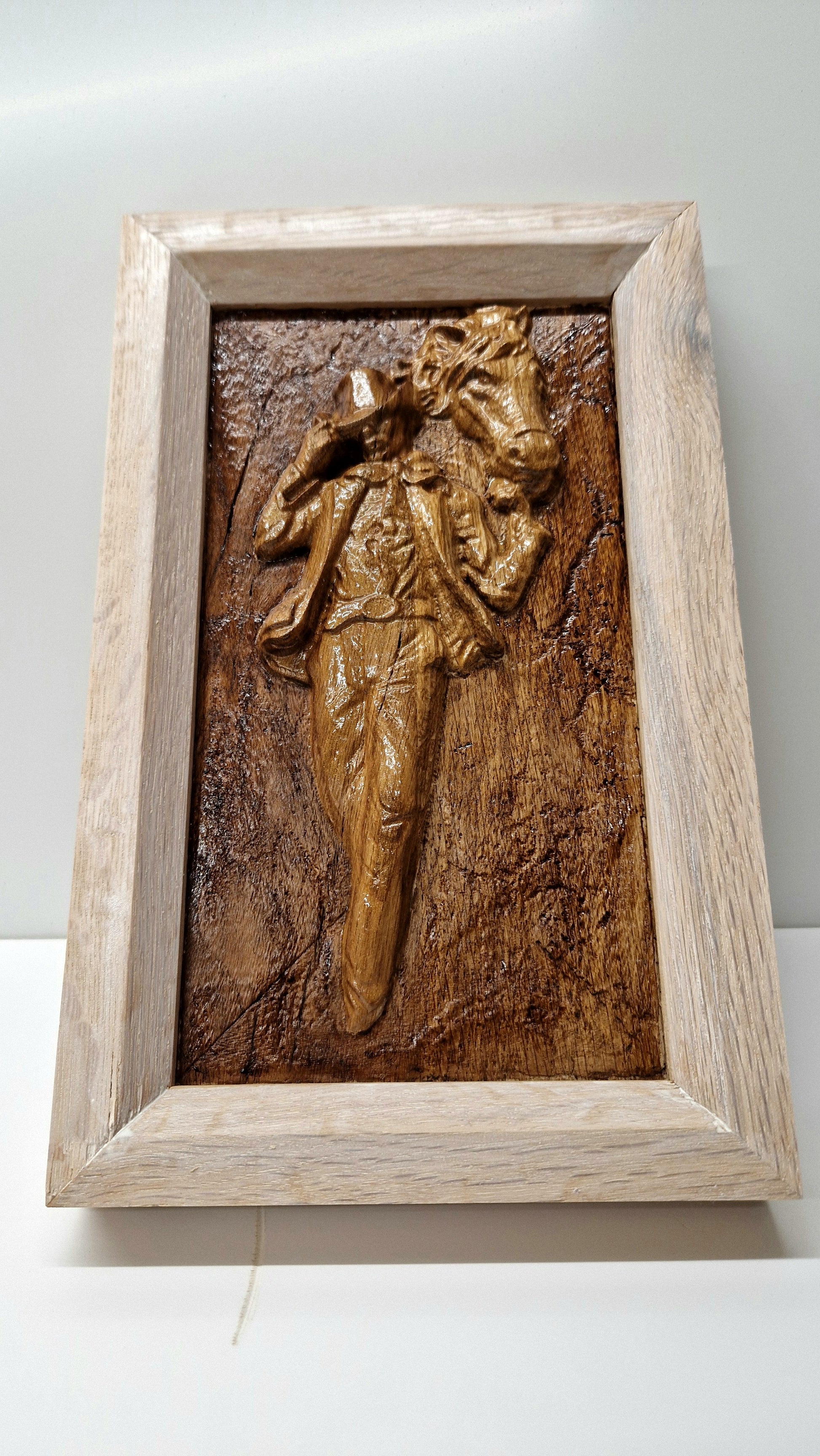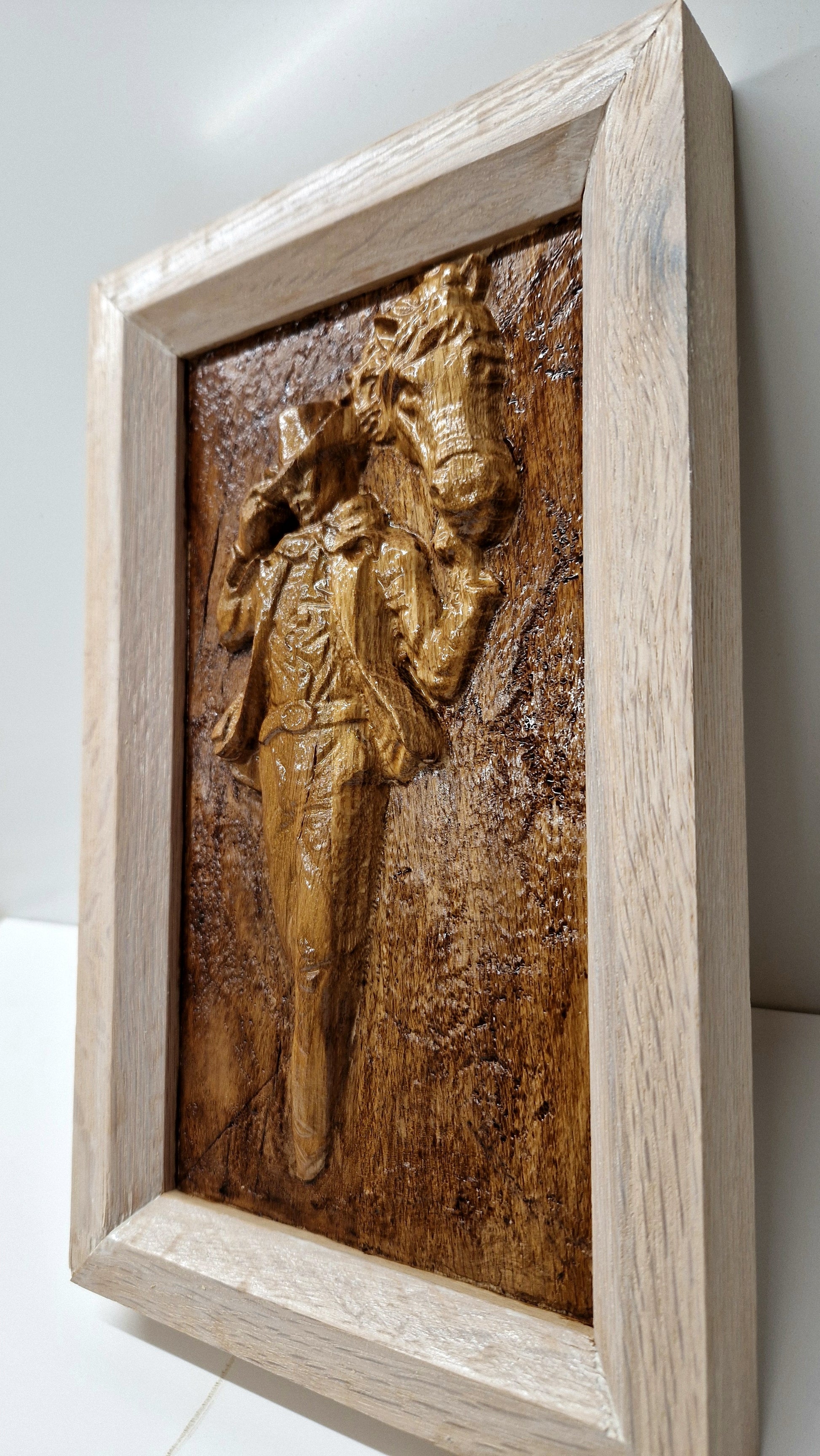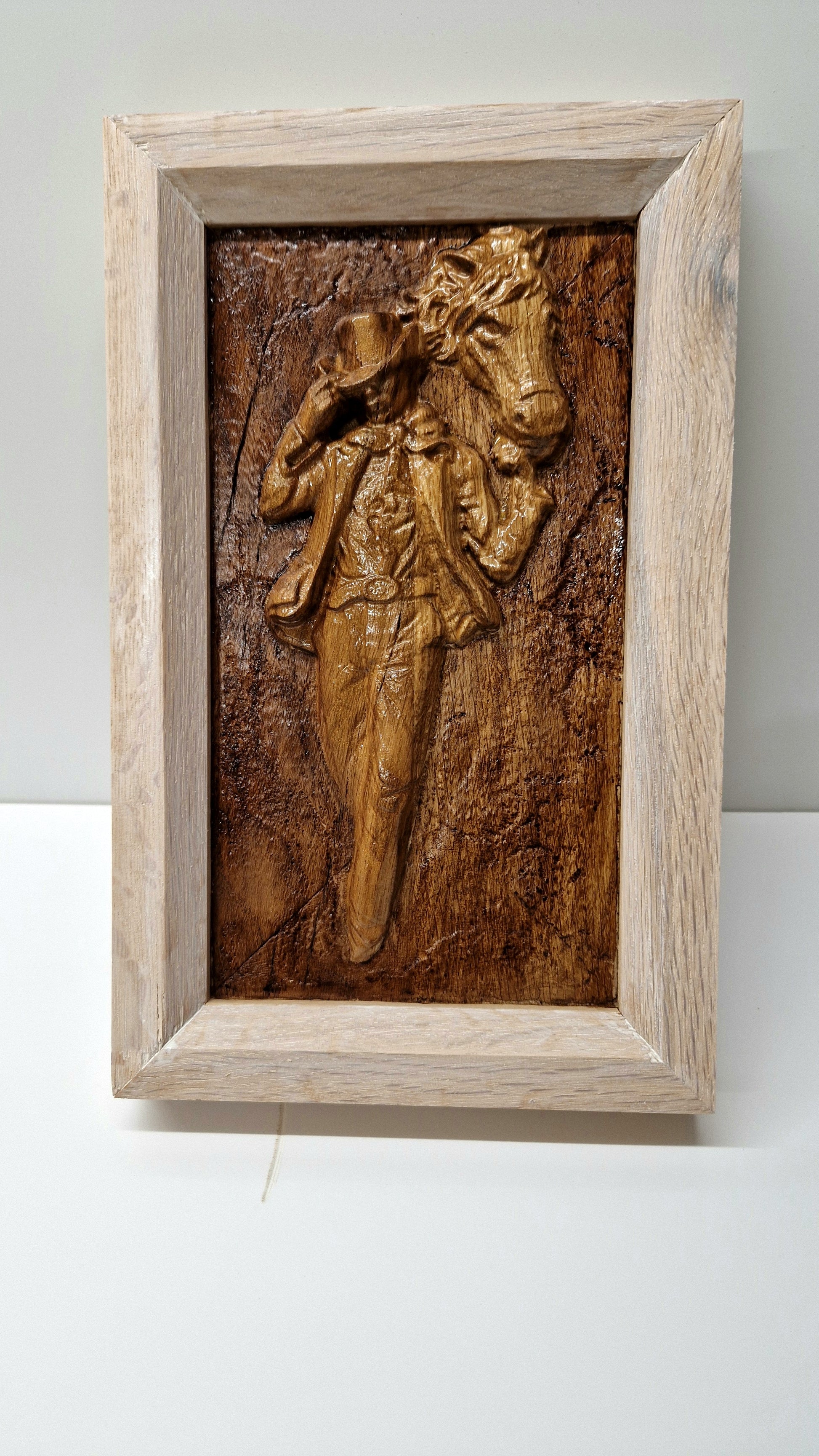 Tablou realizat în lemn de stejar.